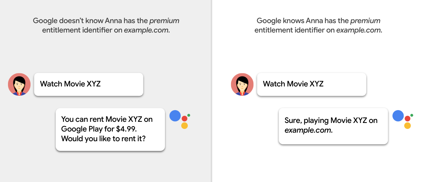 Users prefer to watch or listen to content that they can already access, such as their existing subscription content. If Google knows what content a user can access on your app or platform, then Google can construct a better search result or response to direct the user to that content.