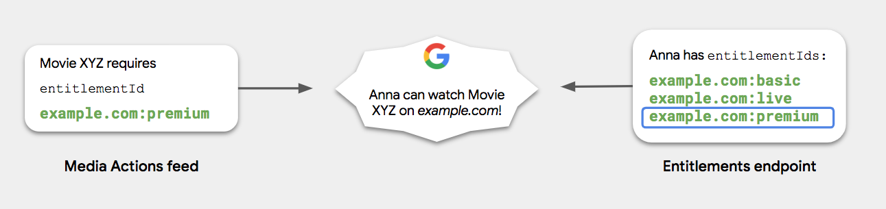 An entitlements endpoint, which requires OAuth 2.0 support, is used by Google to receive a user's entitlement identifiers and determine their access to content.