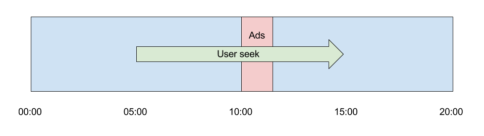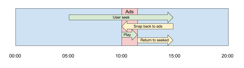As an example, see the diagram below. Your viewer is watching a video, and decides to seek from the 5-minute mark to the 15-minute mark. There is, however, an ad break at the 10-minute mark that you want them to watch before they can watch the content after it:
