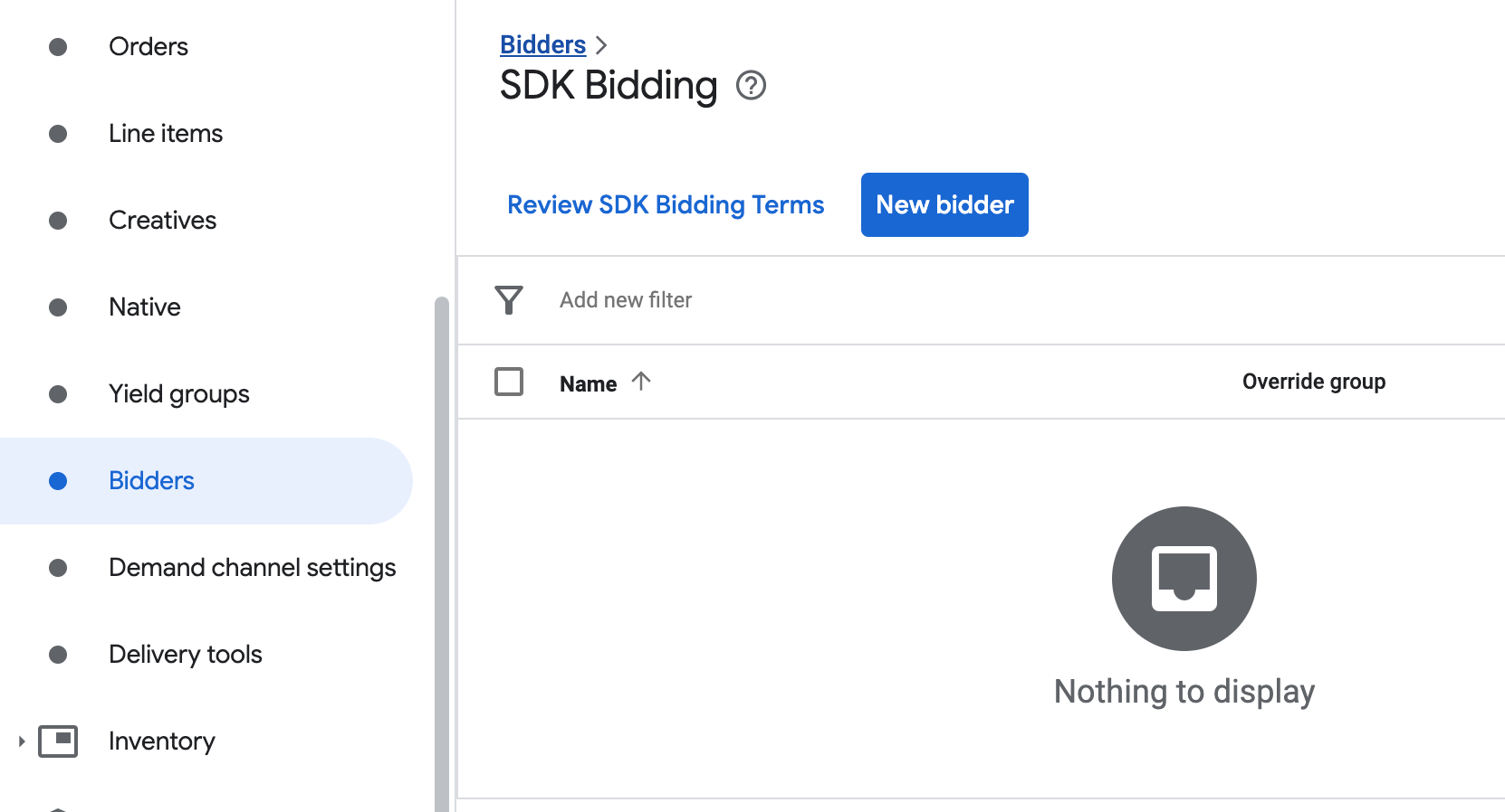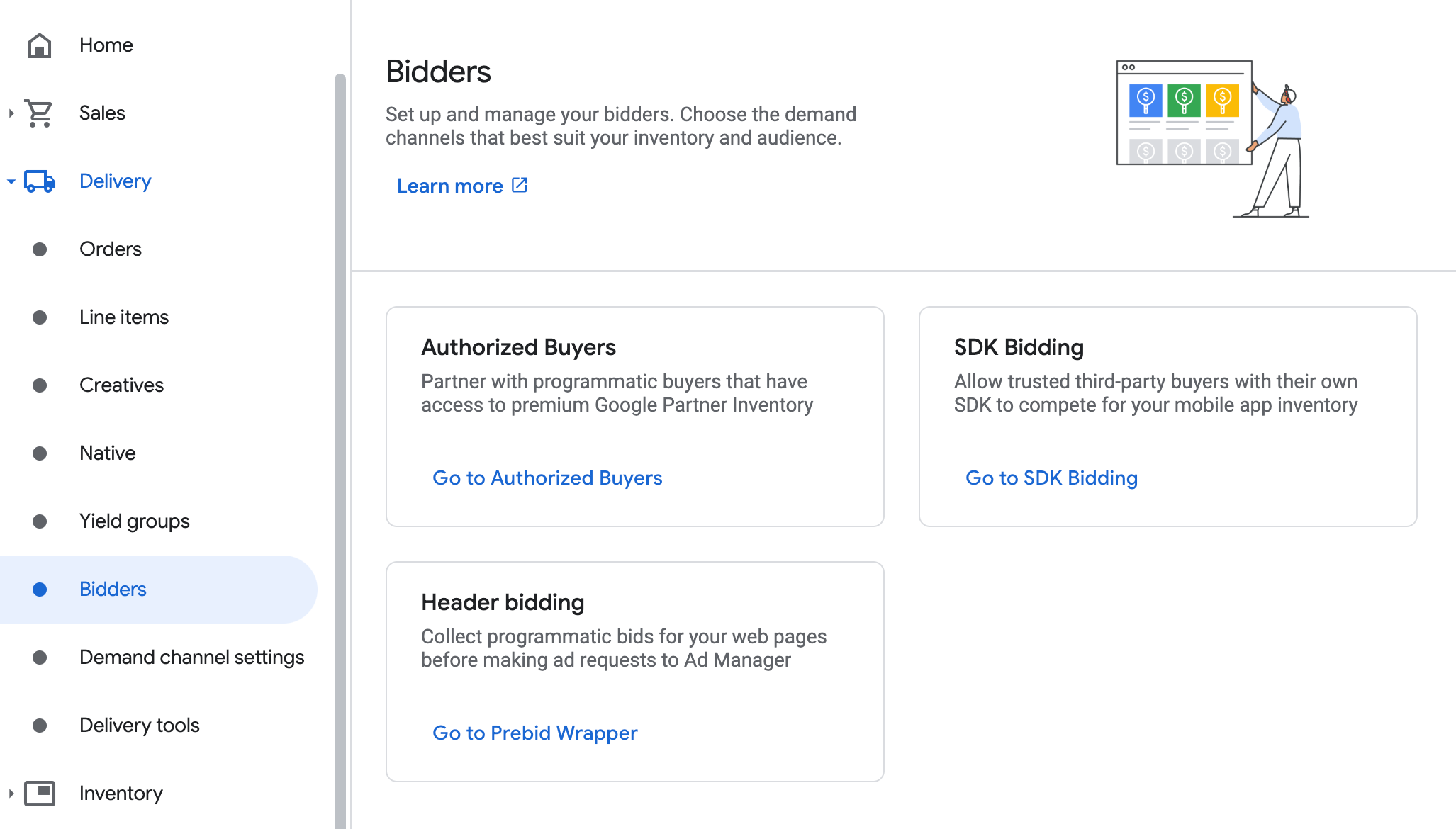 Navigate to Delivery > Bidders, and click Go to SDK Bidding.