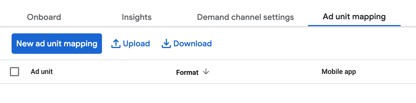Go to the Ad unit mapping tab and click New ad unit mapping.