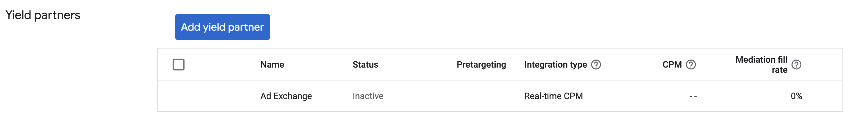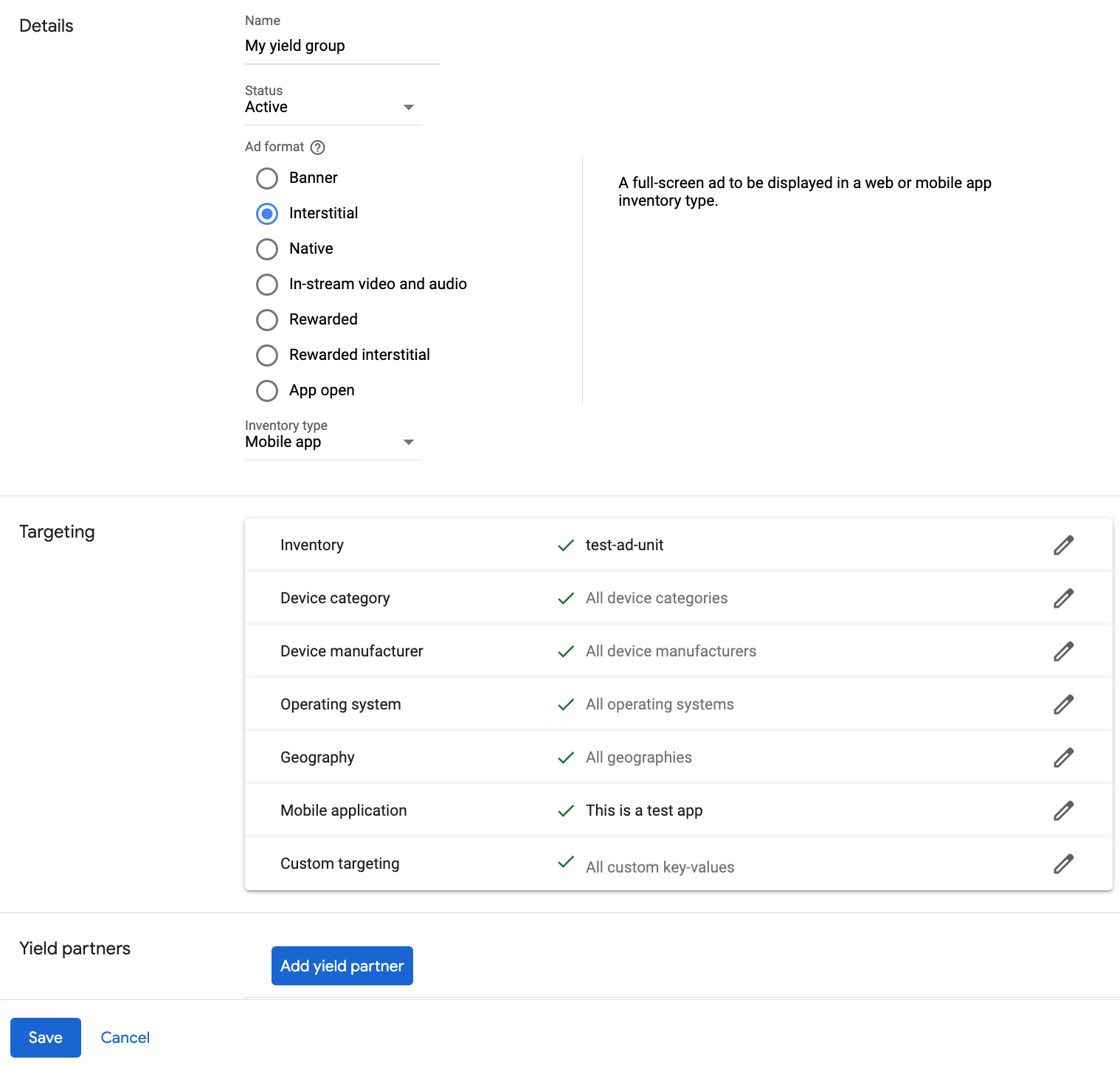 Navigate to Delivery > Yield groups and click the New yield group button. Select your Mobile application.