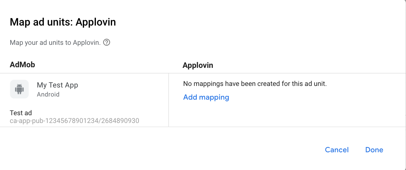 If you already have a mapping for Applovin, you can select it. Otherwise, click Add mapping.
