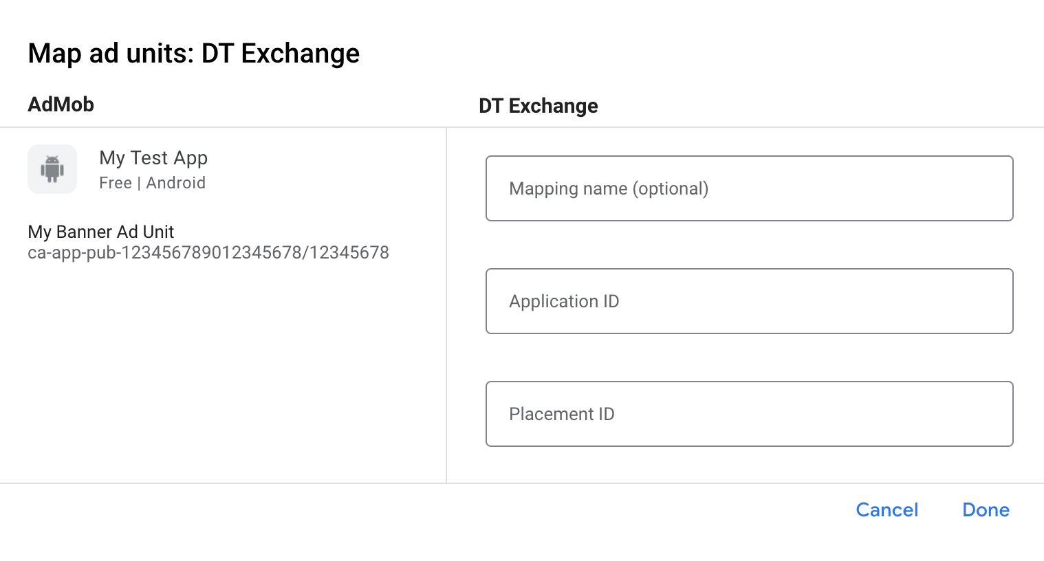 Next, enter the Application ID and Placement ID obtained in the previous section. Then click Done.