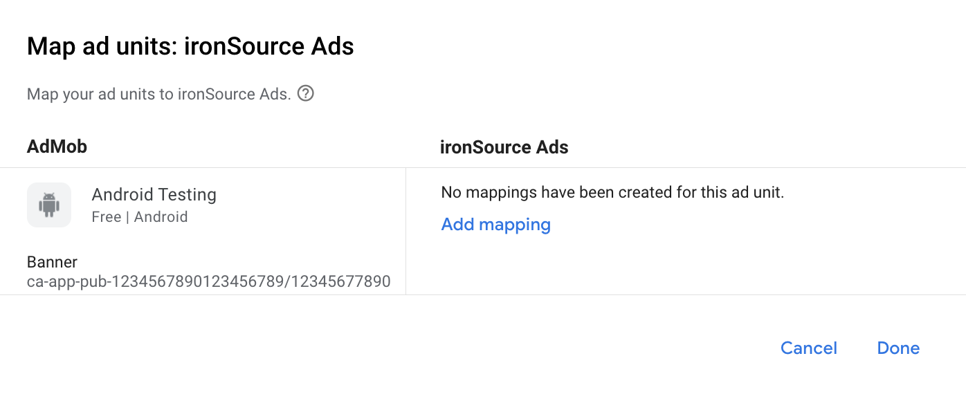 If you already have a mapping for ironSource Ads, you can select it. Otherwise, click Add mapping.