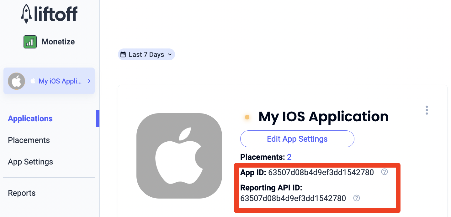 Once your app is created, select your app from the Liftoff Monetize Applications dashboard.