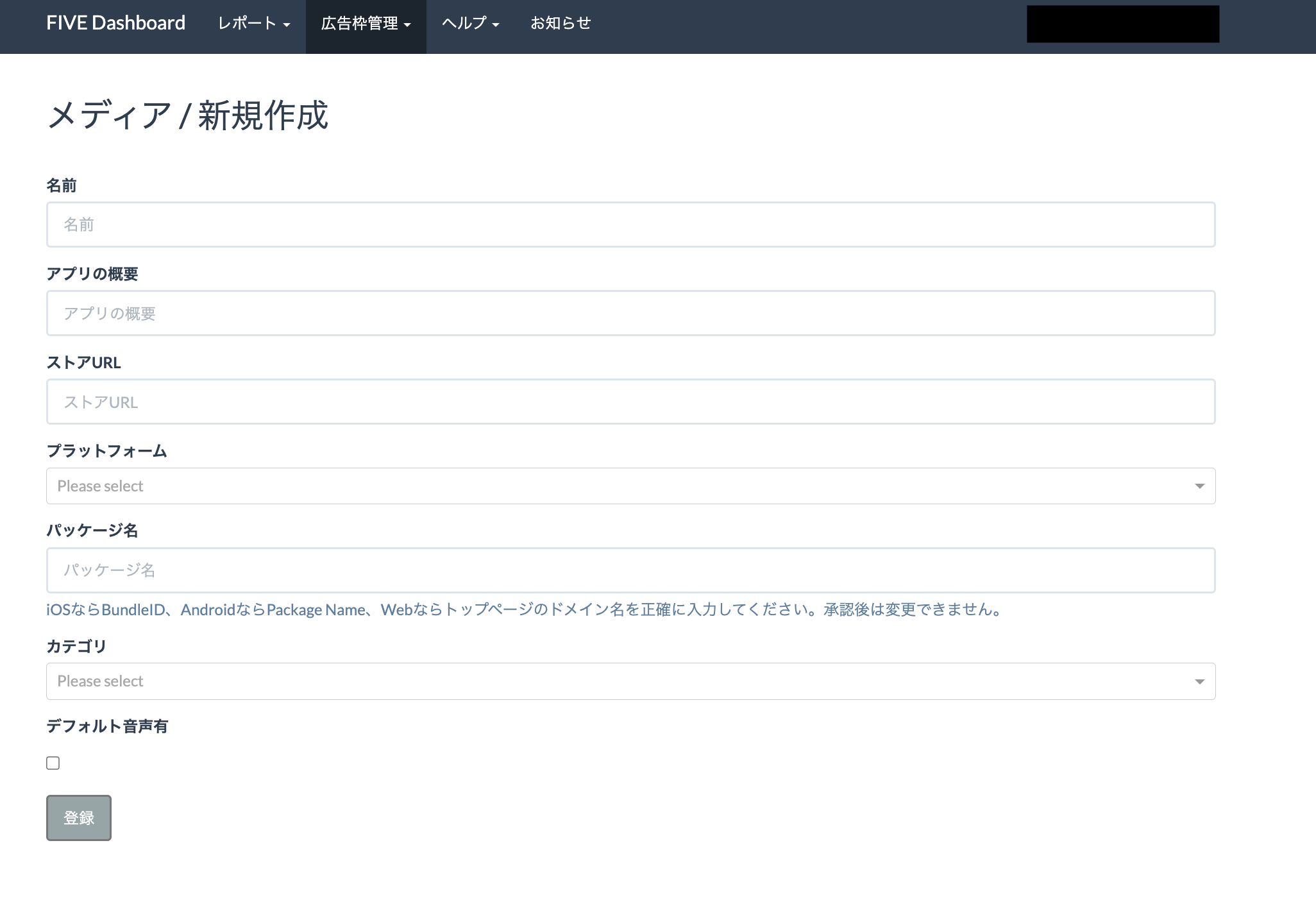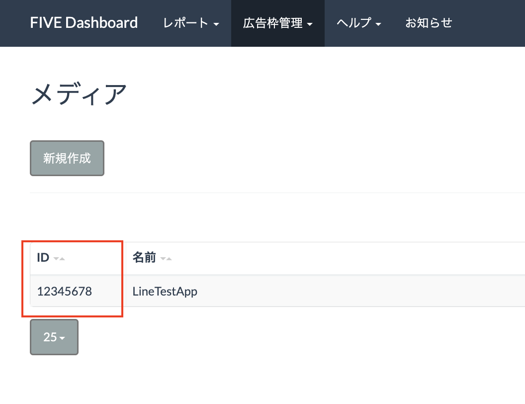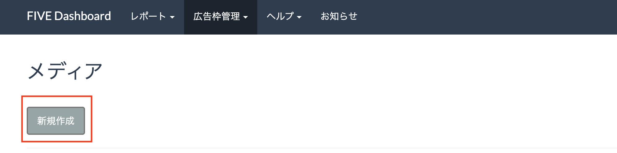 Click 広告枠管理 (Ad Slot Management) > メディア (Media). Then, click 新規作成 (Create New).