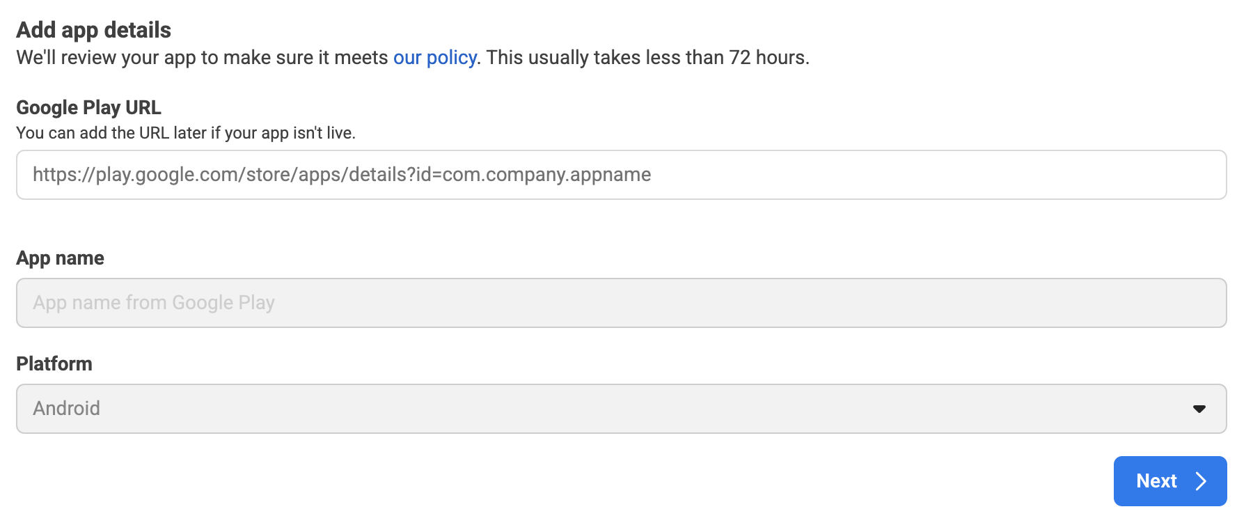 Add your app details and click Next.