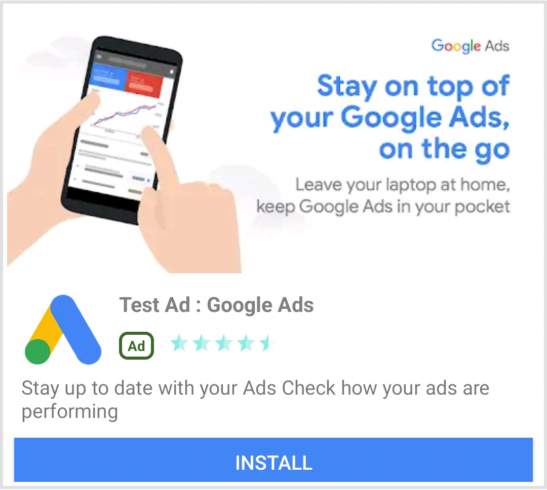 The test ad units are configured to return test ads for every request, so you can use them in your own apps while coding, testing, and debugging—just make sure you replace them with your own ad unit IDs before publishing your app.