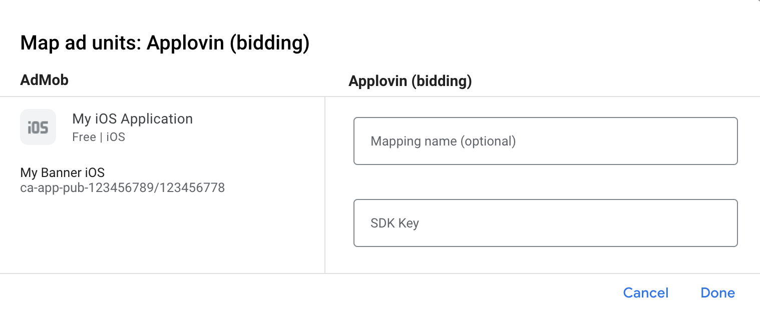 This guide shows you how to use Google Mobile Ads SDK to load and display ads from AppLovin using AdMob Mediation covering both waterfall and bidding integrations. It covers how to add AppLovin to an ad unit's mediation configuration, and how to integrate the AppLovin SDK and adapter into an iOS app.