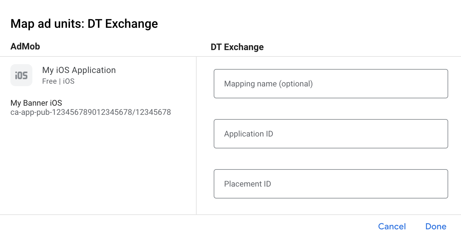 Next, enter the Application ID and Placement ID obtained in the previous section. Then click Done.