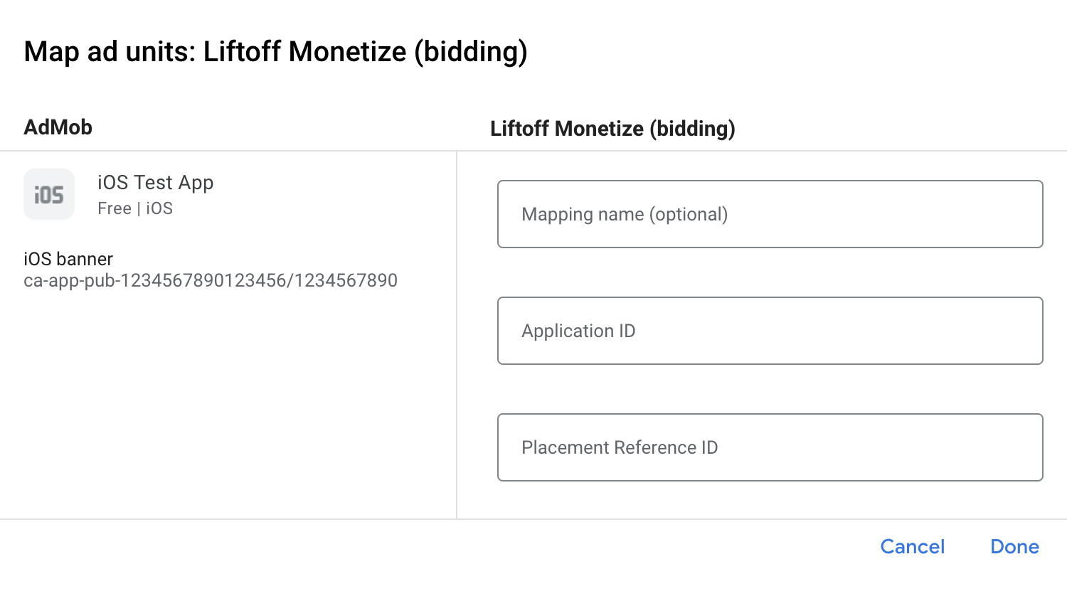 Next, enter the Application ID and Placement Reference ID obtained in the previous section. Then click Done.
