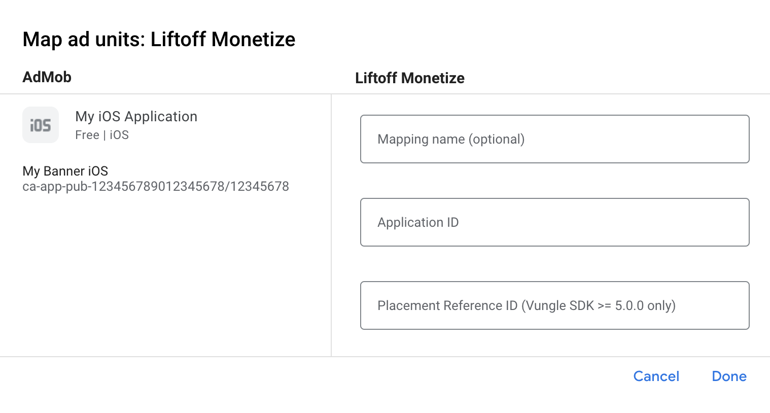 This guide shows you how to use Google Mobile Ads SDK to load and display ads from Liftoff Monetize using AdMob Mediation covering both bidding and waterfall integrations. It covers how to add Liftoff Monetize to an ad unit's mediation configuration, and how to integrate the Vungle SDK and adapter into an iOS app.