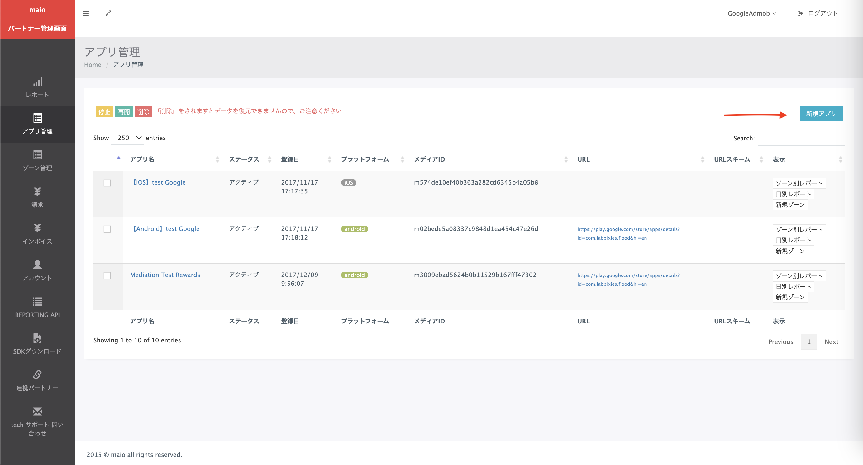 The maio dashboard uses Japanese text, but this guide refers to elements by their English equivalents.