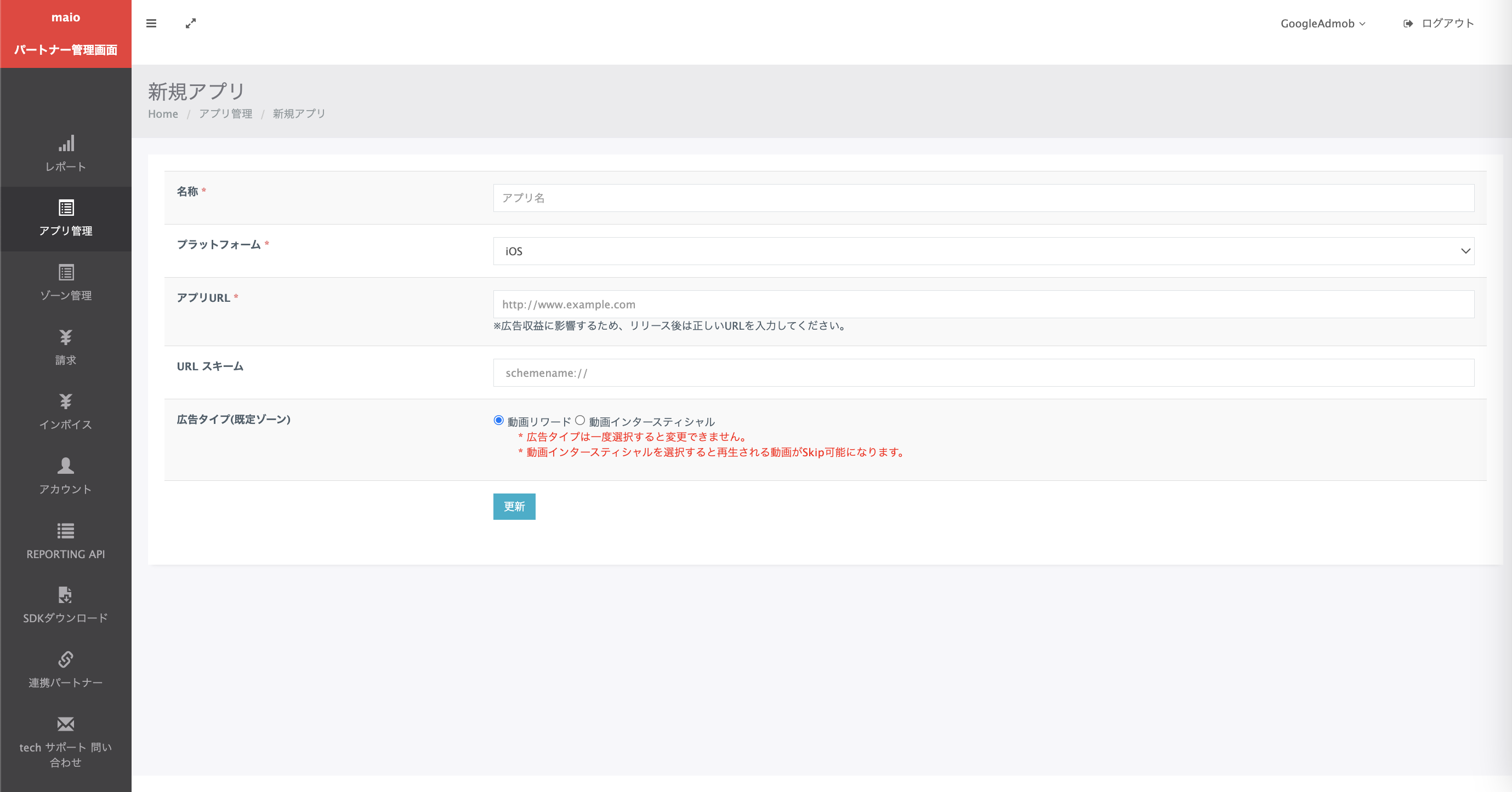 Enter the Name of your app, select the platform and provide your App URL. Select Video Rewards as the Ad Type, and then click Update.