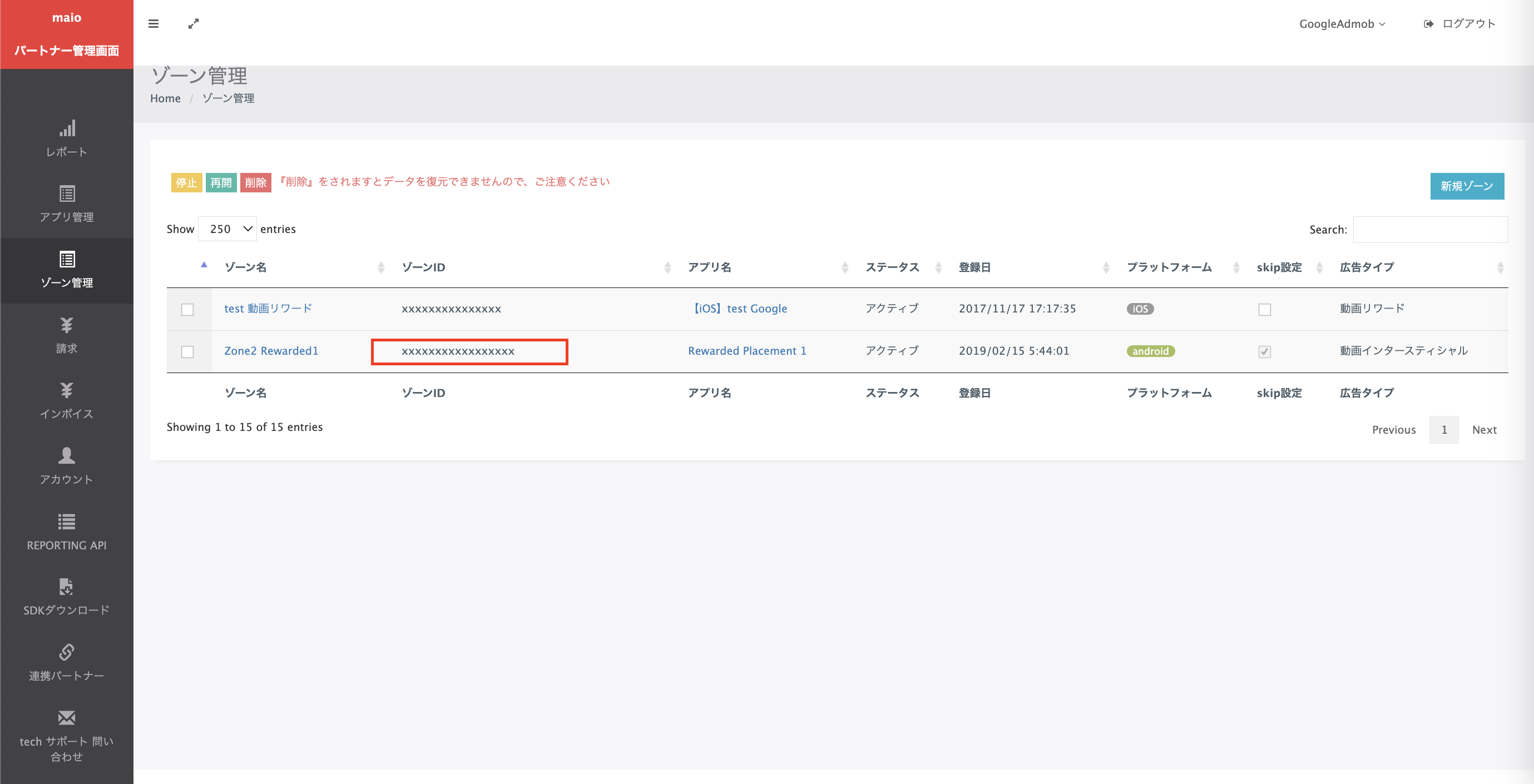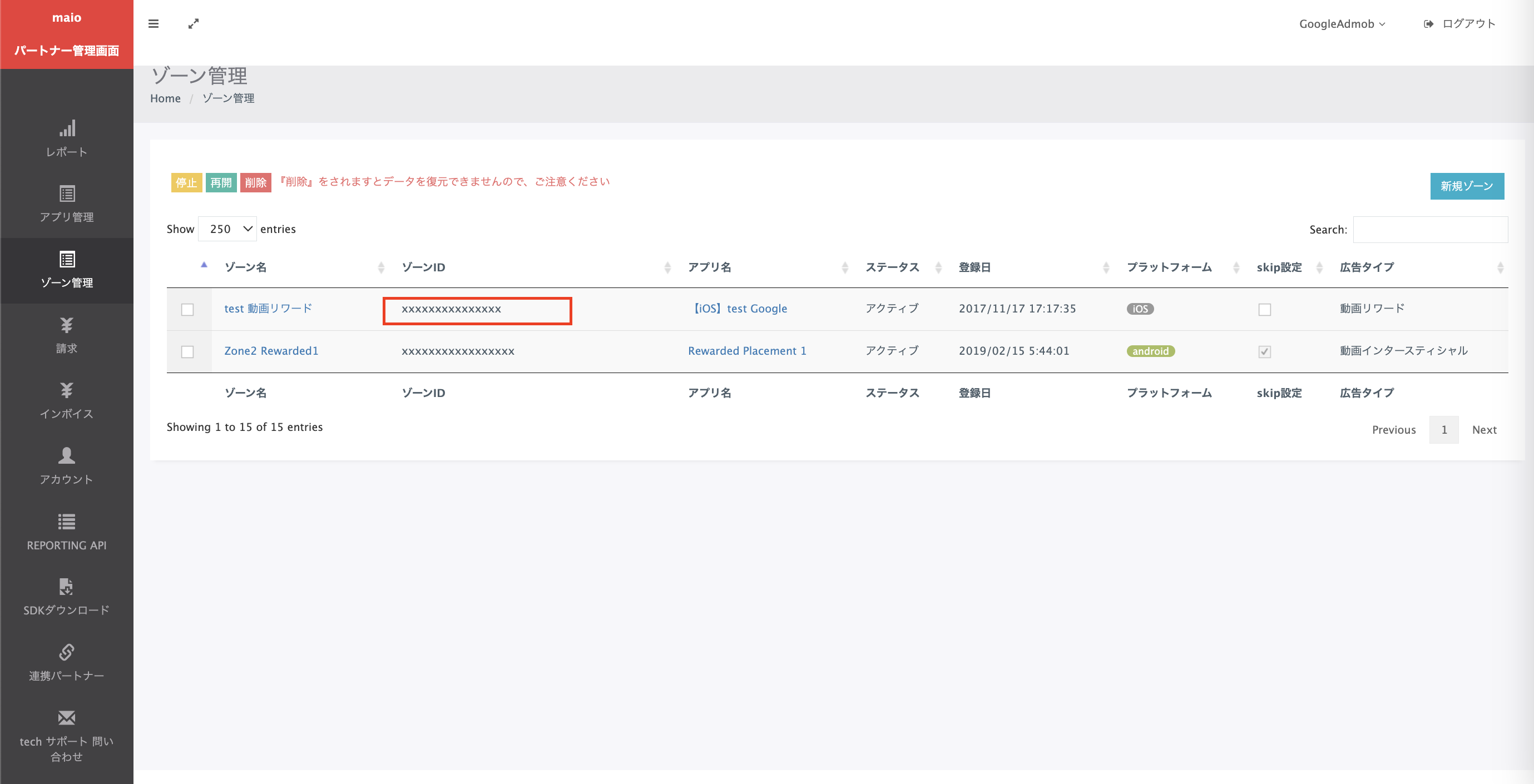 In the Zone Management page, make a note of the Zone ID. It will also be needed to set up your AdMob ad unit in the next section.