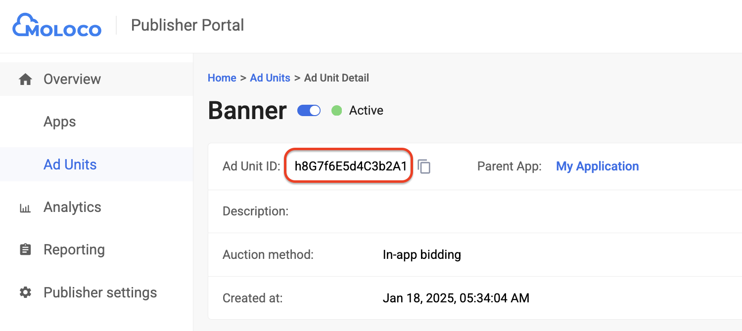 Navigate to your newly created ad unit under the Ad Units tab to view its details. Take note of the Ad Unit ID.