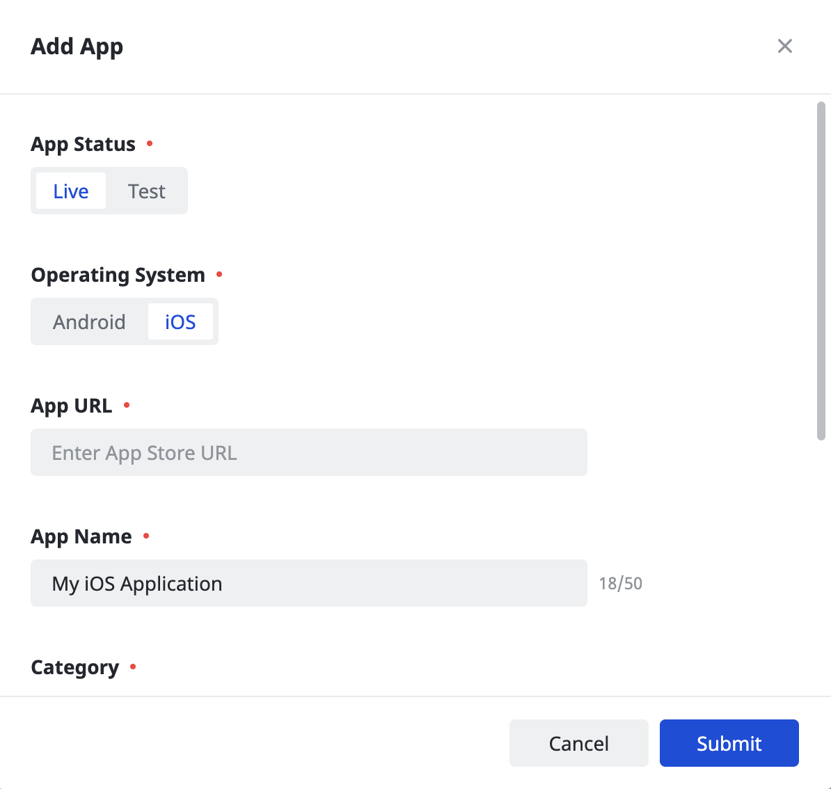 Select the Operating System you wish to create an application for and fill out the rest of the form. Then, click Submit.