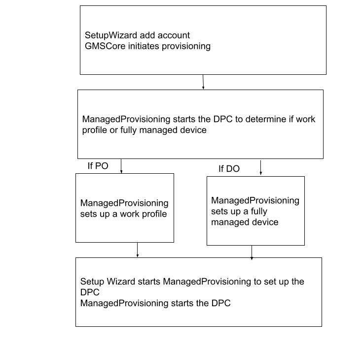 AccountManager.addAccount(). - The DPC receives the broadcast