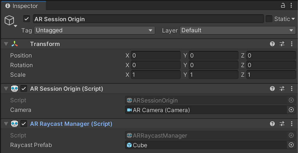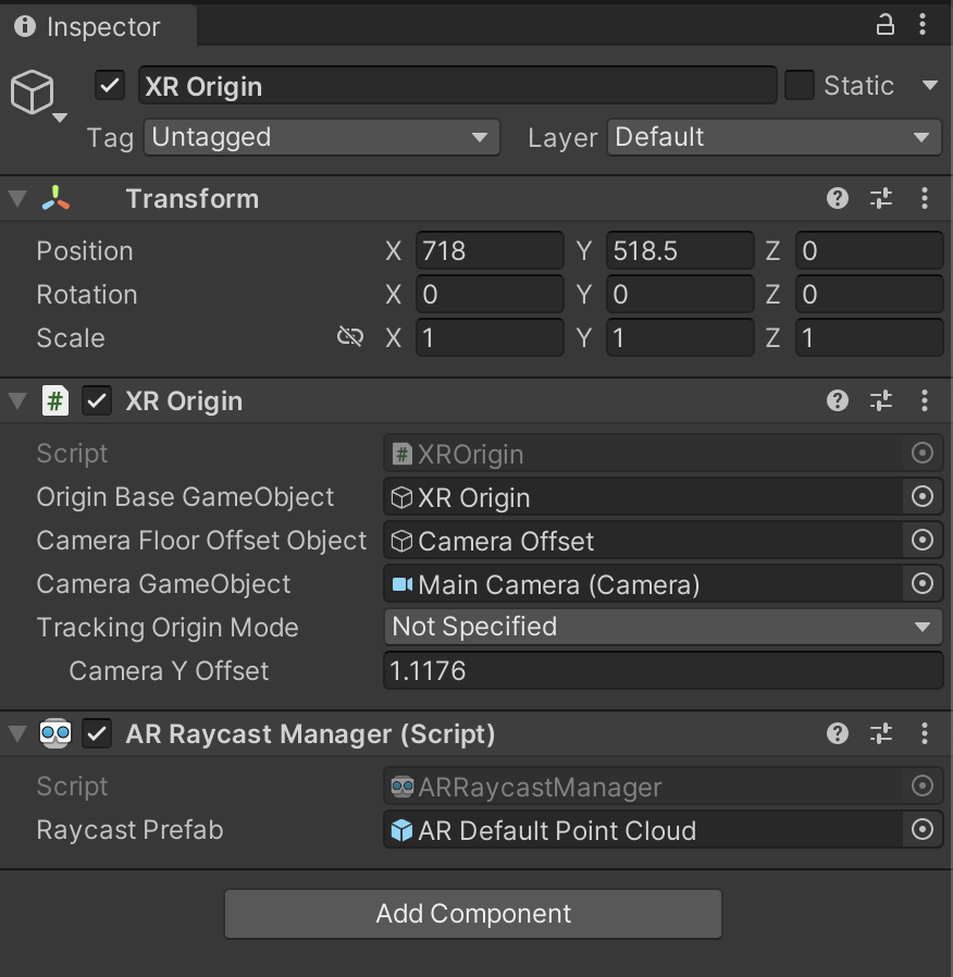 Add the AR Raycast Manager component into the AR Session Origin game object.