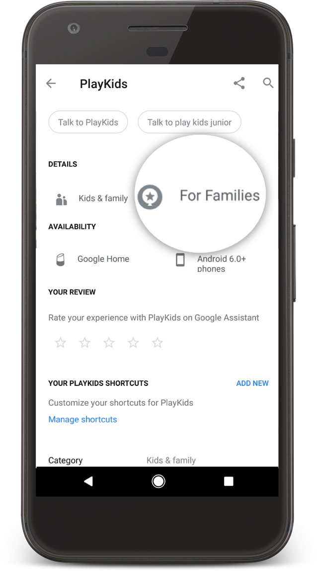 As part of our Actions for Families program, your Action will display a badge in the Assistant directory that lets parents know it's family-friendly.