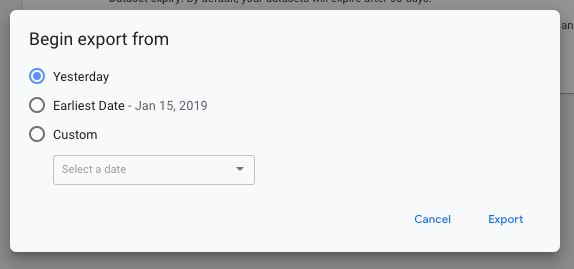 To export data from an earlier date, you can choose to backfill historical data. To do this, follow these steps: