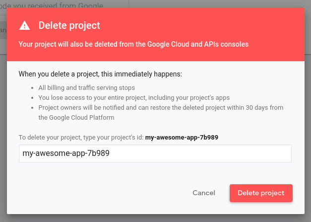 - Enter the Project id displayed above the text field.