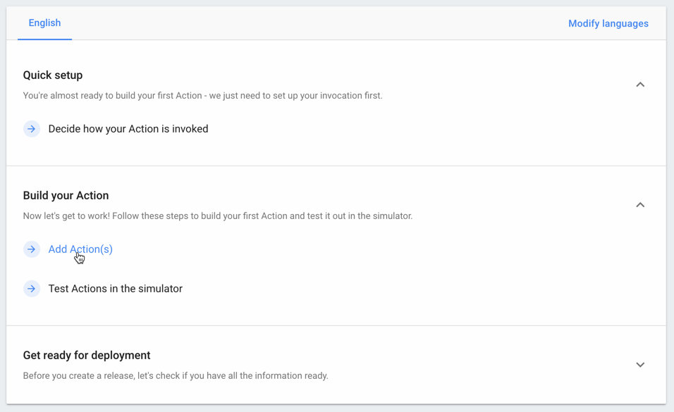 This page goes over creating your Actions project and configuring a Dialogflow agent.