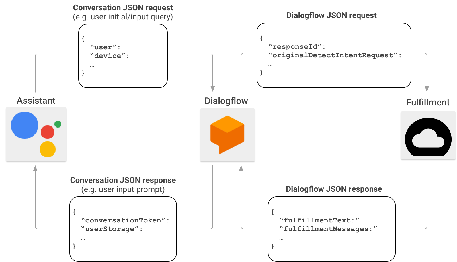 It's important to understand how Actions on Google and your fulfillment communicate through the Actions on Google webhook formats: