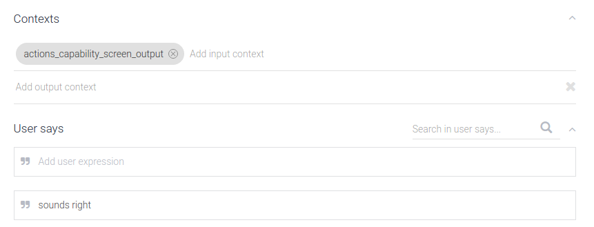 Conversation branching - Present users with completely different conversation on each surface. For example, if you are building a food-ordering app, you might want to provide a re-ordering flow on Google Home, but a full cart assembly flow on mobile phones. To do conversation branching, scope intent triggering in Dialogflow to certain surface capabilities with Dialogflow contexts. The actual Dialogflow intents are not triggered unless a specific surface capability is satisfied.