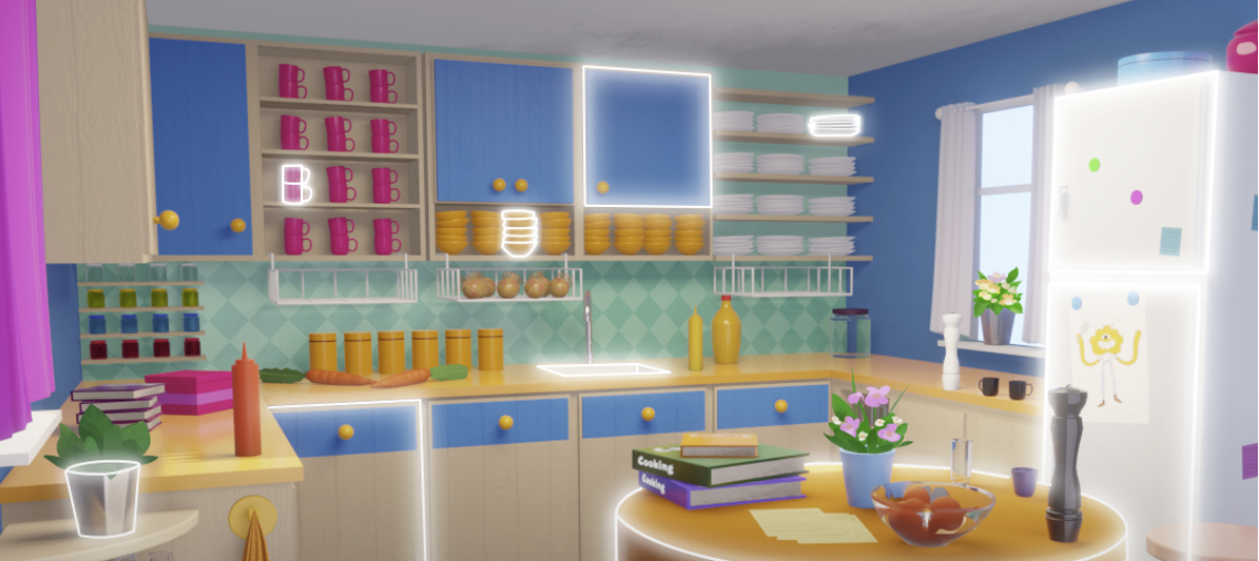 In Cookie Detective, players attempt to find a cookie hidden in a kitchen by asking questions, like "Is it somewhere yellow?" or "Is it somewhere high?". The player wins if they can discover the cookie's hiding place in 10 questions or less. Cookie Detective features three different kitchens with various difficulty levels, so players can continue to challenge themselves in new environments after beating a level.
