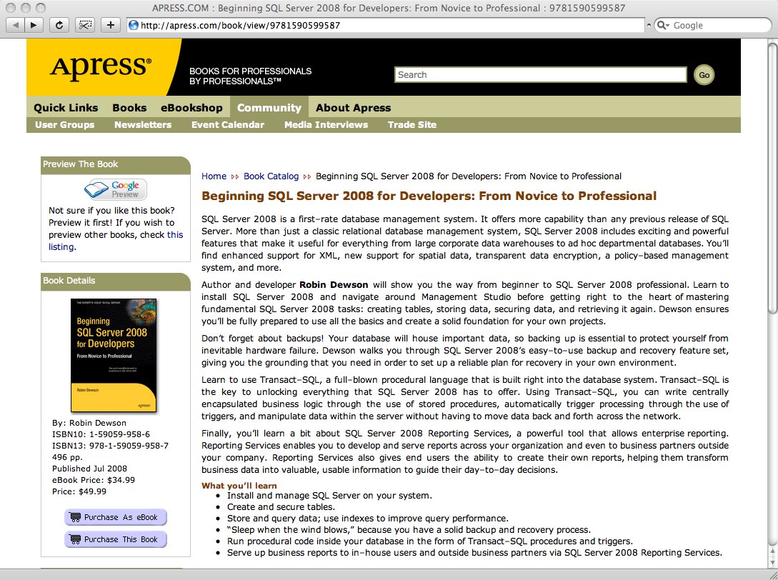 "The embedding of Google search is another way to offer greater access to Apress content in a secure environment. We are excited to participate and believe that it will make our site more useful, powerful, and valued by the IT and Development communities."