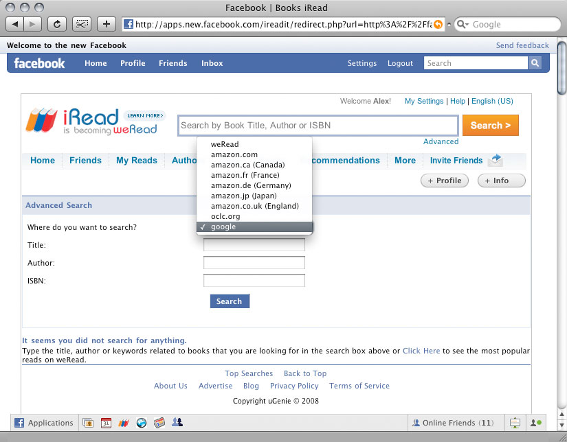 Using the Book Search Embedded Viewer and Data APIs, weRead was able to enhance their application with search across and preview functionality. This is available to weRead users not only on weRead.com, but through its apps for social networks including Facebook.