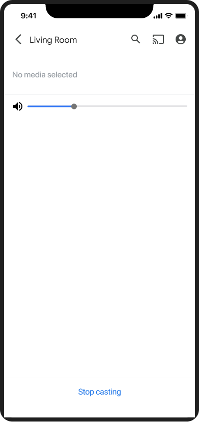 The receiver plays content and reflects its state to the user. The receiver must respond immediately to actions in the sender app . For example, when content is paused on the receiver, it displays a pause icon and when the user presses play on the sender app, the receiver starts playing the content and removes the pause icon.