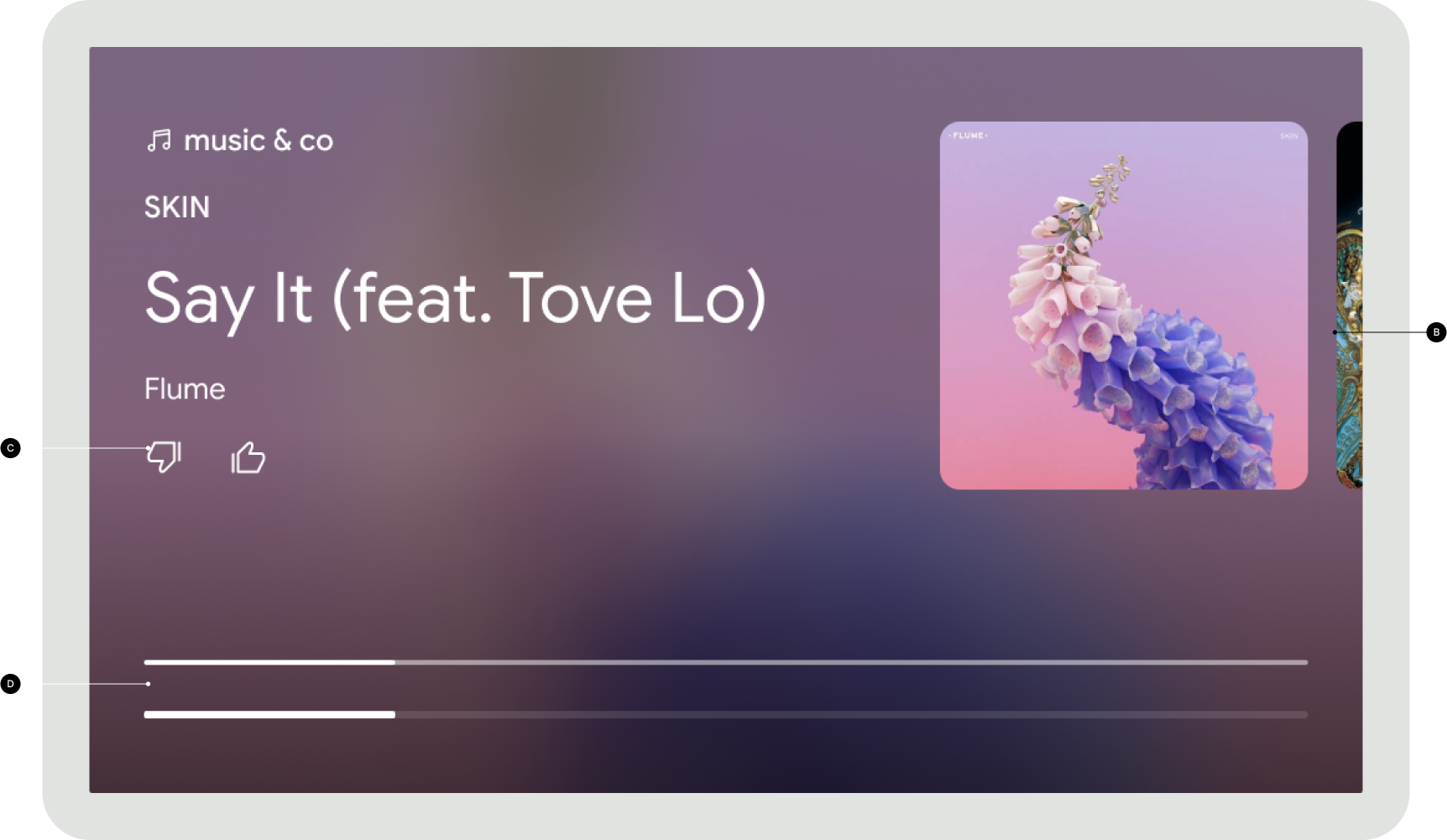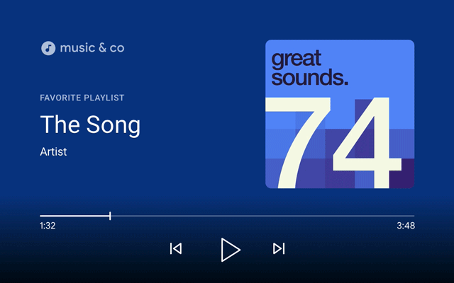 Audio receivers should not display control elements like progress bars and should place metadata above the protected area.