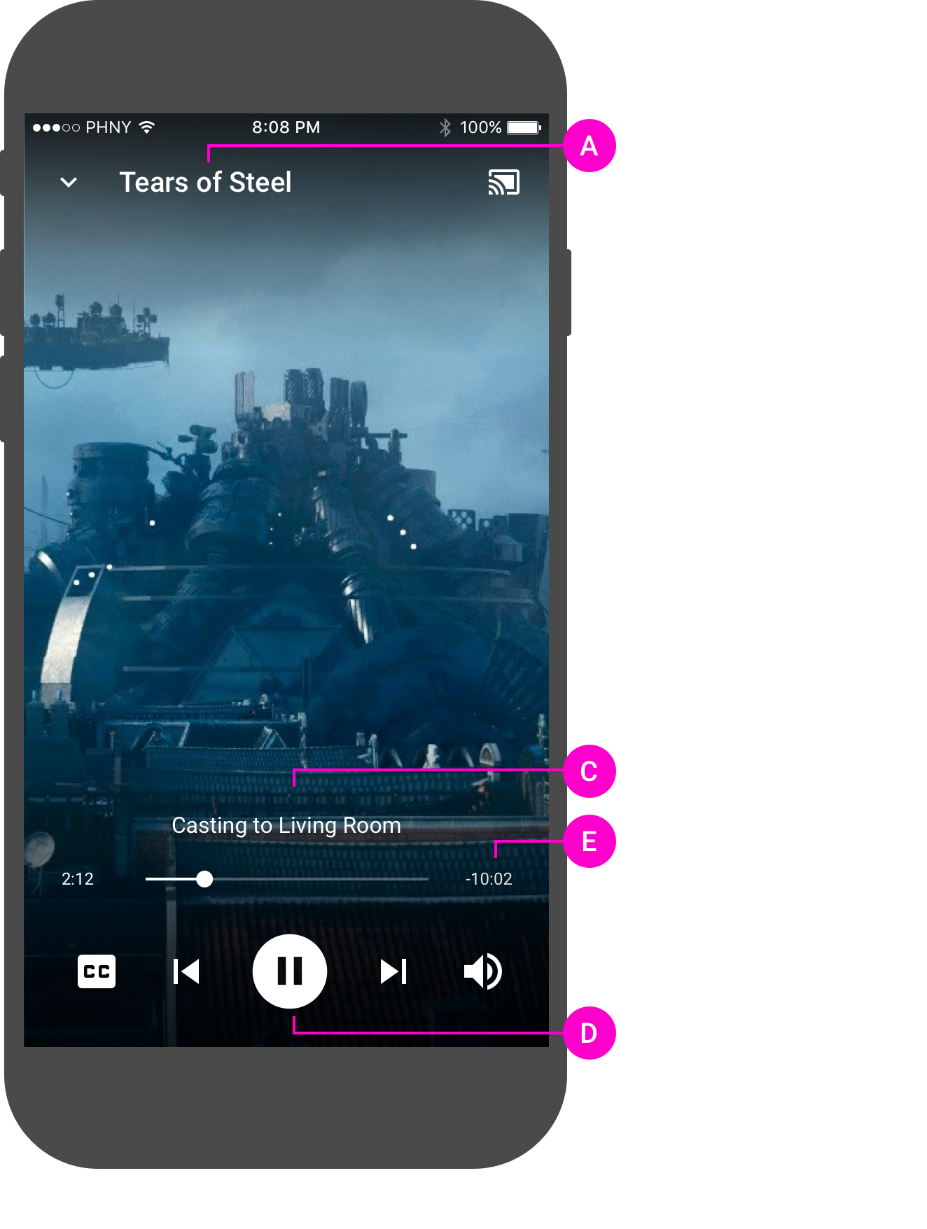 Note: In accordance with the Google Cast SDK Additional Developer Terms of Service, a Cast media application must use the Play control APIs (Media Playback Messages) defined for the SDK to control media playback on the Web Receiver.