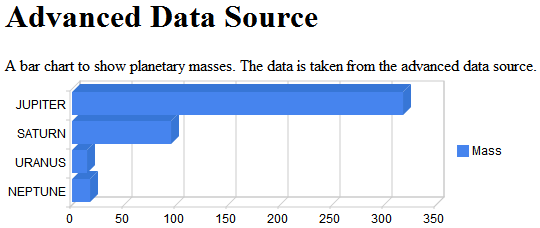 query = new google.visualization.Query('advanced?tableId=planets&tq=select planet,mass'); ... var chart = new google.visualization.BarChart(document.getElementById('advanced_div'));
