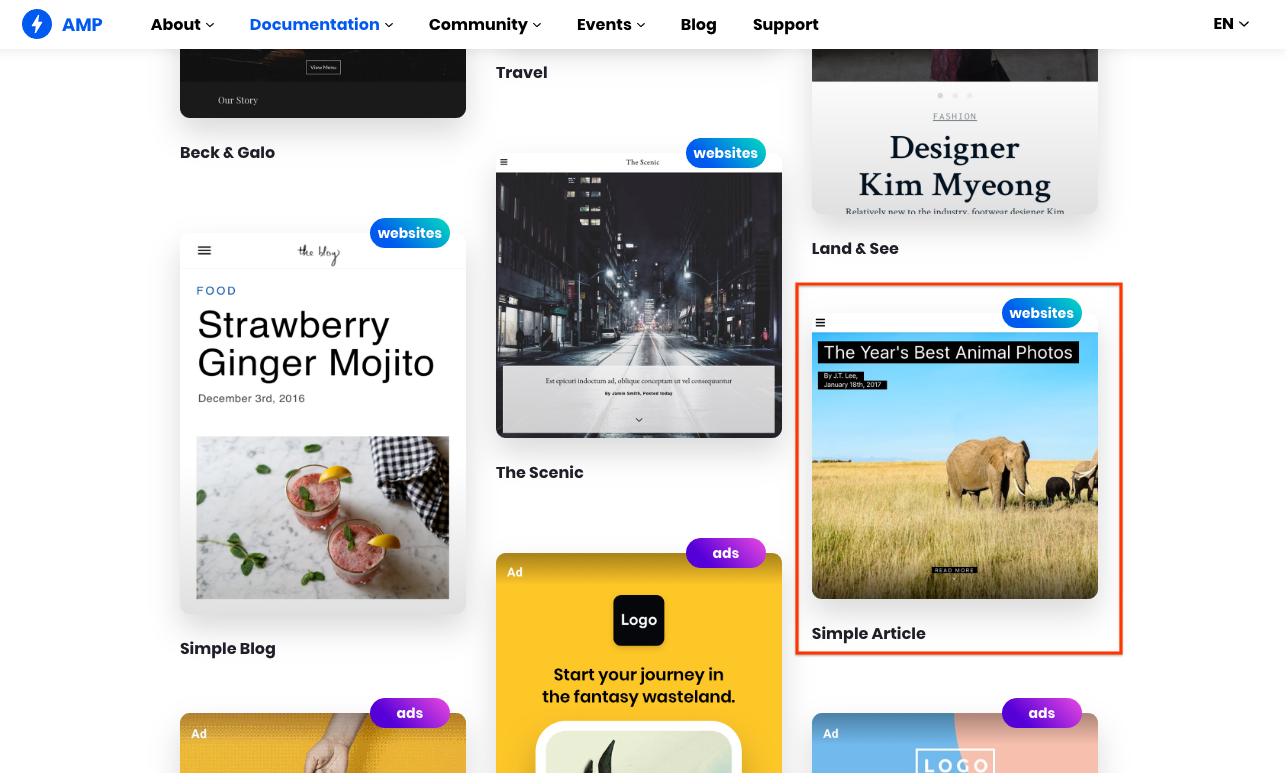 Visit AMP Templates and download the code for the "Simple Article" for "The Year's Best Animal Photos" template.