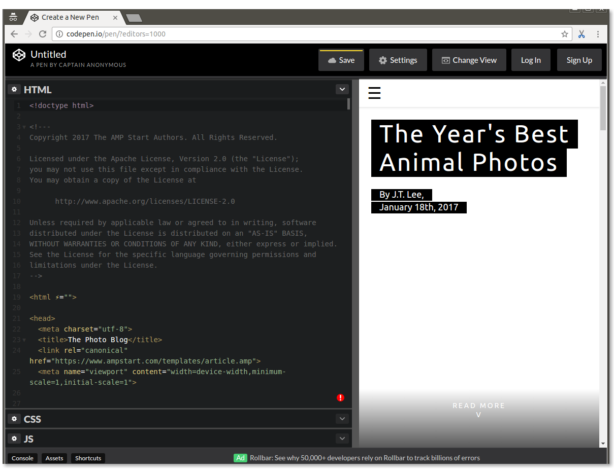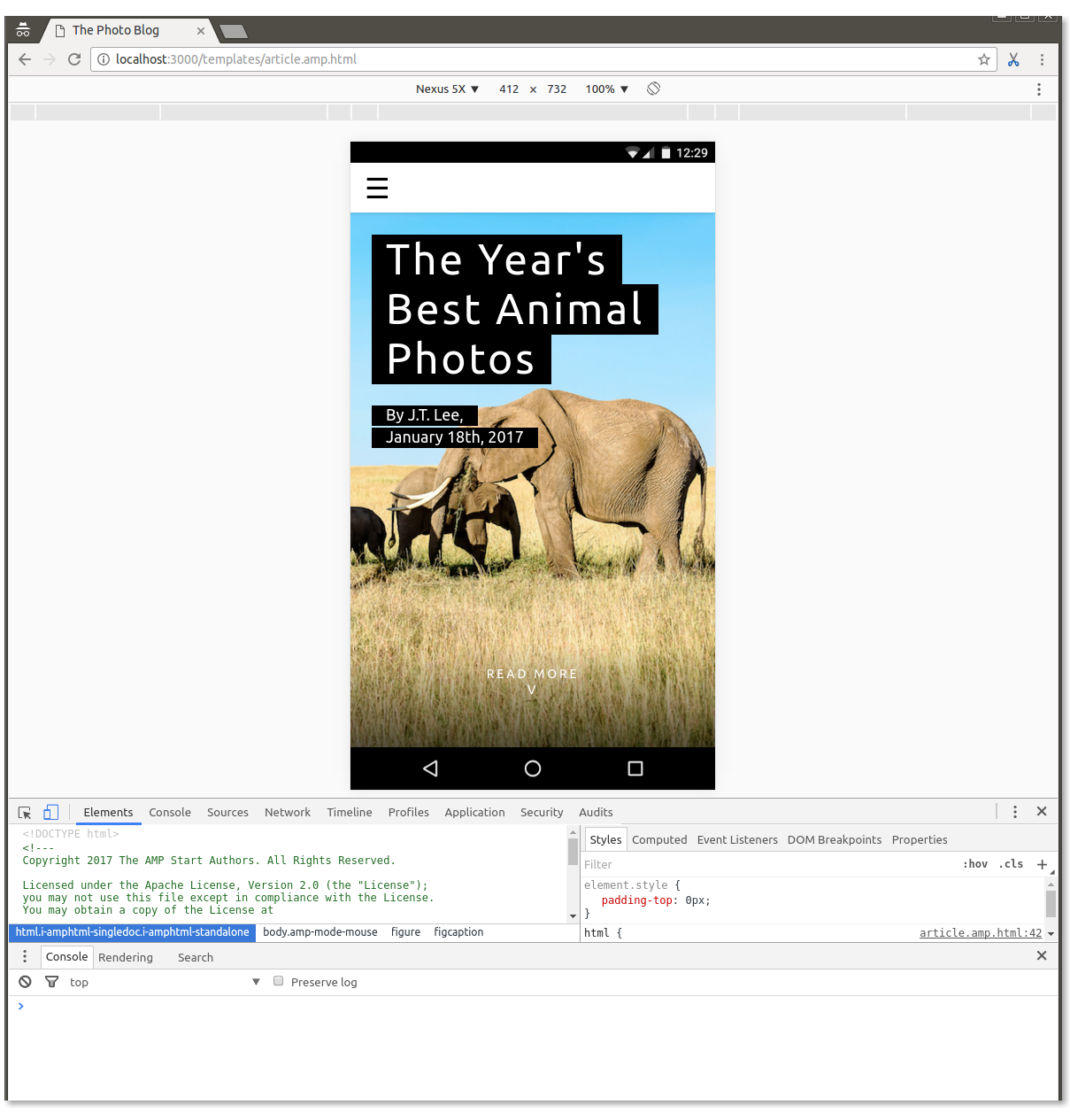 At this point, we've scaffolded a mostly functioning AMP page, but the purpose of this codelab is for you to learn and practice, so...
