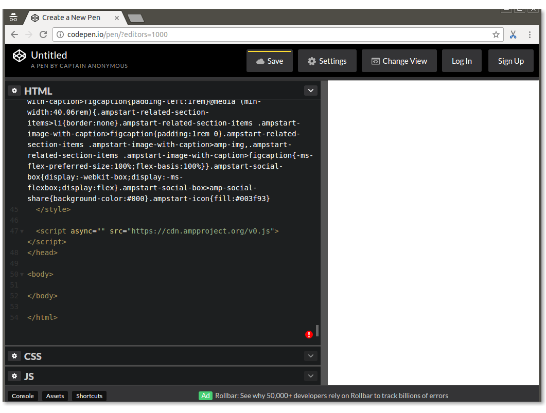 The simplest AMP HTML file looks like this (sometimes referred to as AMP boilerplate):