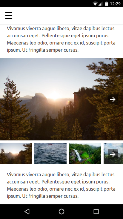 </amp-selector>Let's test it out. Tap a thumbnail, and image slides will change. Swipe the image slides, and the highlighted thumbnail will change.