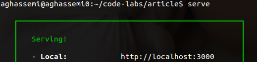 Our tool of choice to serve content locally will be serve, a Node.js-based static content server. To install it, run the following command: