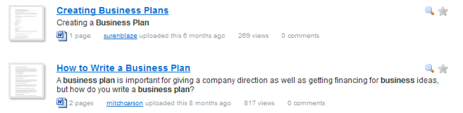 Figure 3: Result snippet that includes document types, authors, page views, and comments.