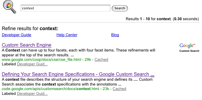 In addition to using the Programmable Search Engine Control Panel, you can control the look and feel of your search engine by editing the context XML file. (Learn more about the advantages and disadvantage of each format in The Basics page.) If you are not familiar with context files, read Context: Defining a Search Engine.