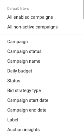 The following table summarizes some of the common terms used in the UI and their mappings to the Google Ads Query Language (GAQL).