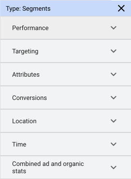 For more detailed statistics, split the data by segments. For example, suppose you want to see the number of impressions specific to the Google Search Network separately from the Google Display Network. In that case, segment your report by network. See Segmentation on how to include segment fields in the SELECT clause.