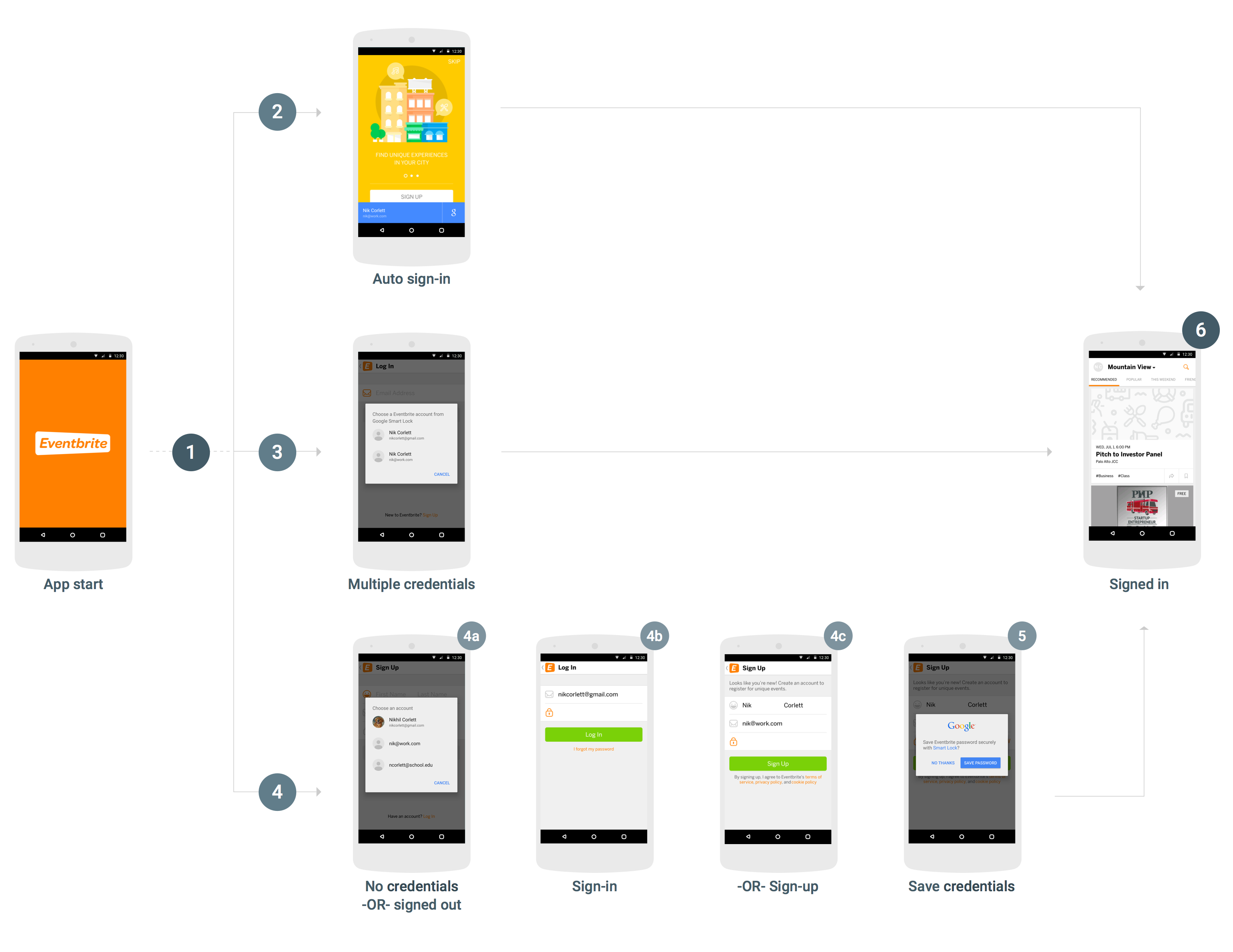 While there are many ways to successfully integrate Smart Lock for Passwords, and the specifics of an integration depend on the structure and user experience of the app, the following flow is recommended for most apps. Apps that use this flow have these user experience advantages: