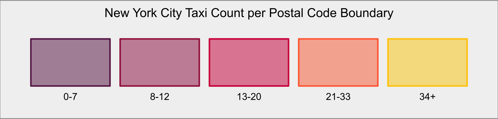 Taxi counts in NYC by Postal Code (time-lapse) Map legend