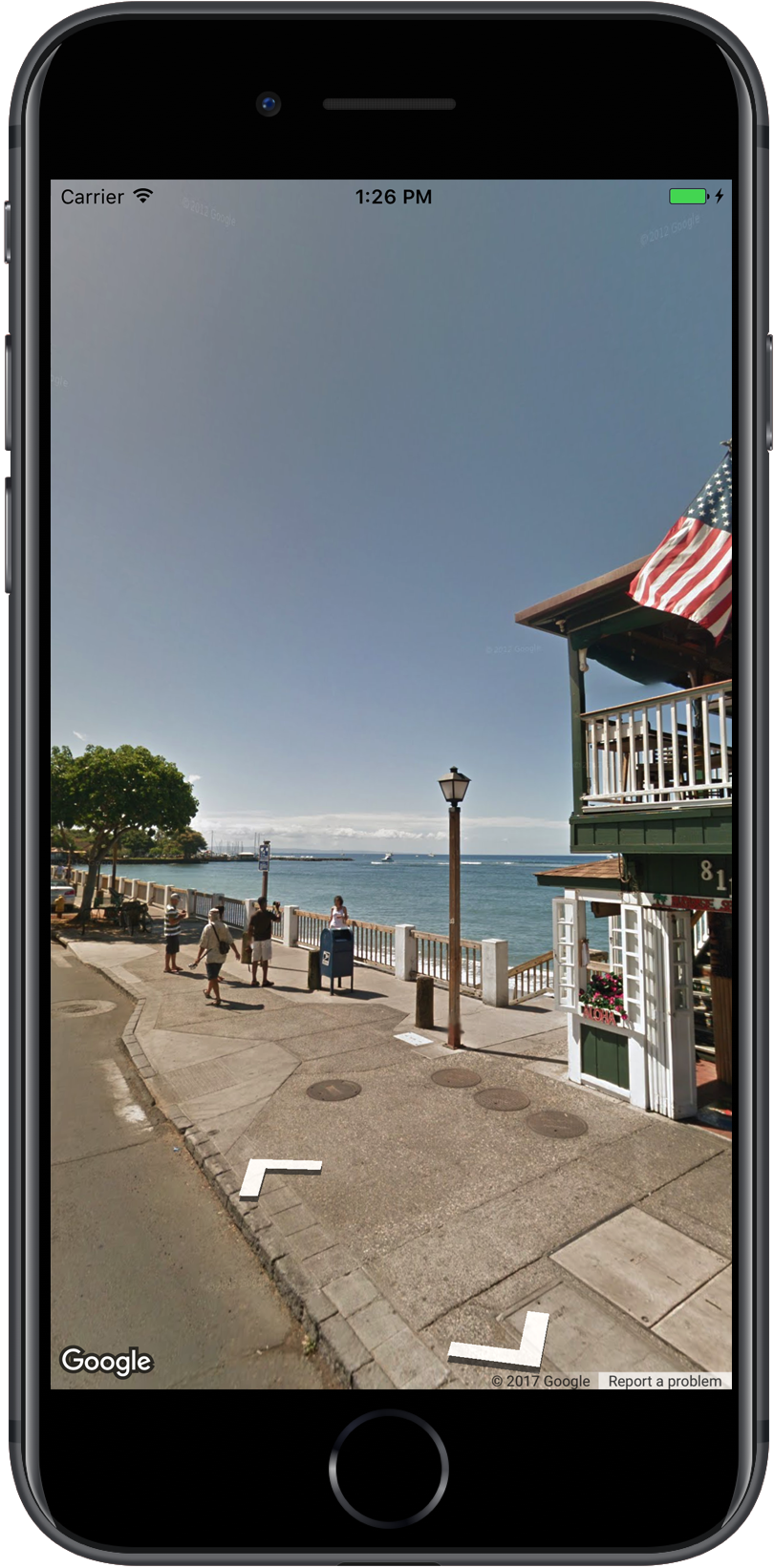 GMSPanoramaViewobject as the view controller's view. For example,self.view = panoView;. - Set the location of the Street View image using a