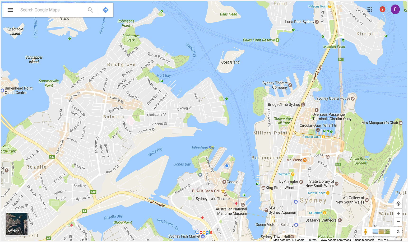 Australia (at -33.712206,150.311941), and sets the optional zoom